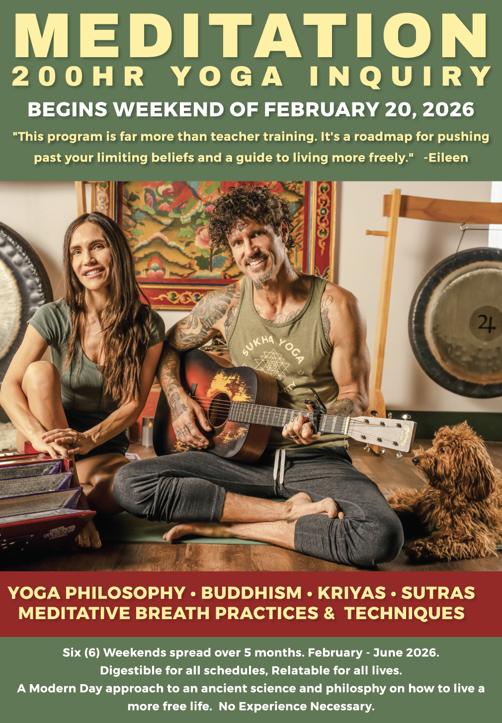 SUKHA YOGA TEACHER TRAINING: 200 & 300 Hour Yoga Alliance Certified. Vinyasa, Yoga Philosophy, Buddhist Teachings, Kundalini & Kriya Yoga, Breath Work Practices (Pranayama), Meditation, Yin and Restorative Practices. A Full 8 Limb Yoga Experiences. Over 35 years of hands on experience.