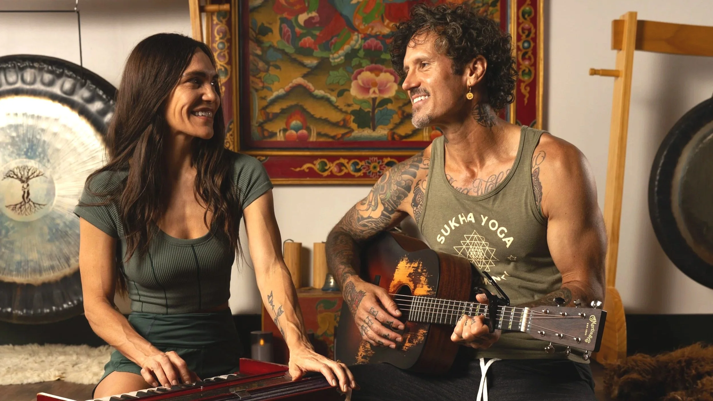 A Lively community Kirtan Event hosted at Sukha Yoga Austin. Erinn Arizcorreta and Morgan Bosworth on vocals and Harmonium, Kayla Erickson on drums and Ryli Webster and Andrew Stinson on guitar. Join us for our next Chant Camp or Kirtan in Austin Texas or online